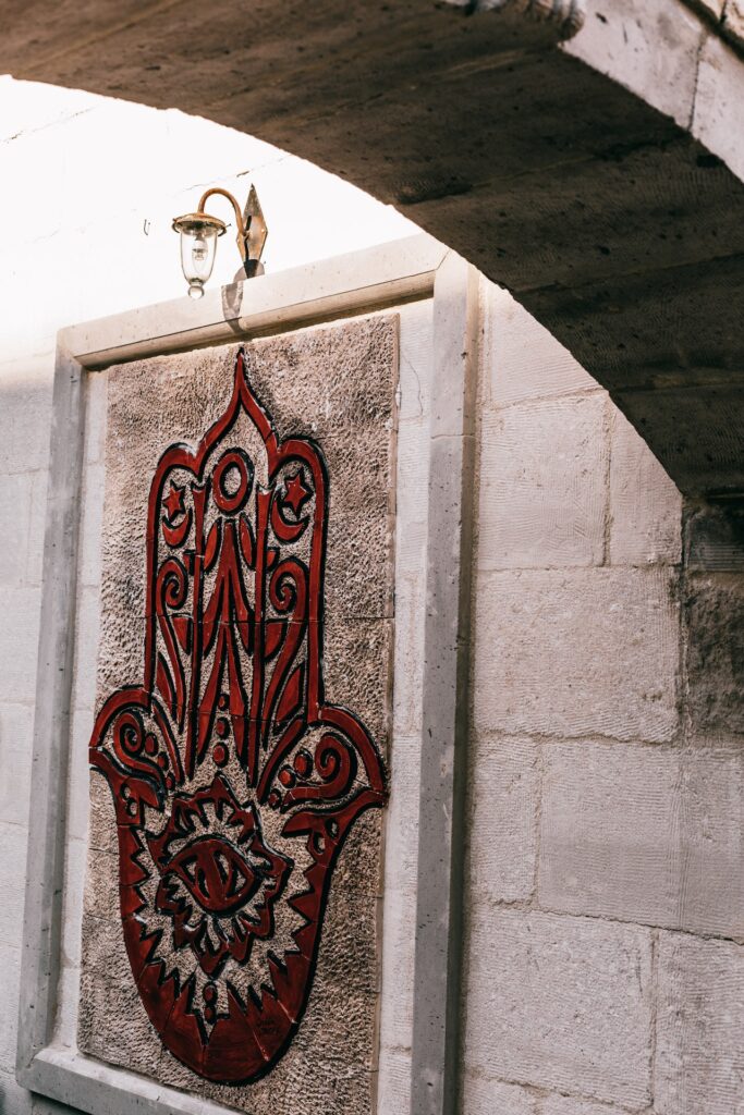 Además de su uso personal, la Mano de Fátima también se ha incorporado en la arquitectura y el arte de diferentes culturas. Es común verla en puertas, paredes y objetos sagrados, ya que se considera que protege esos espacios.
