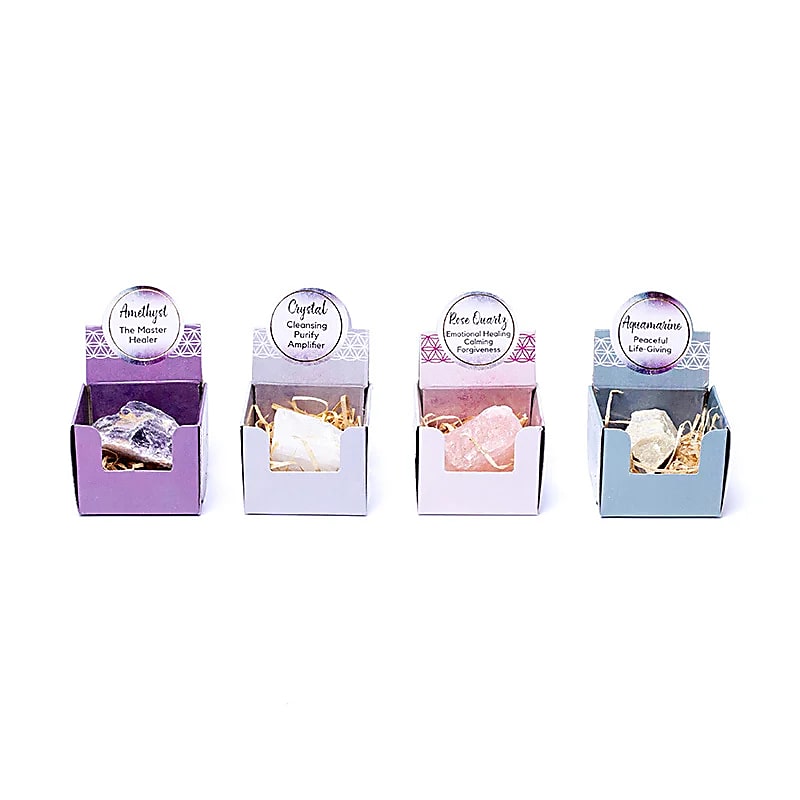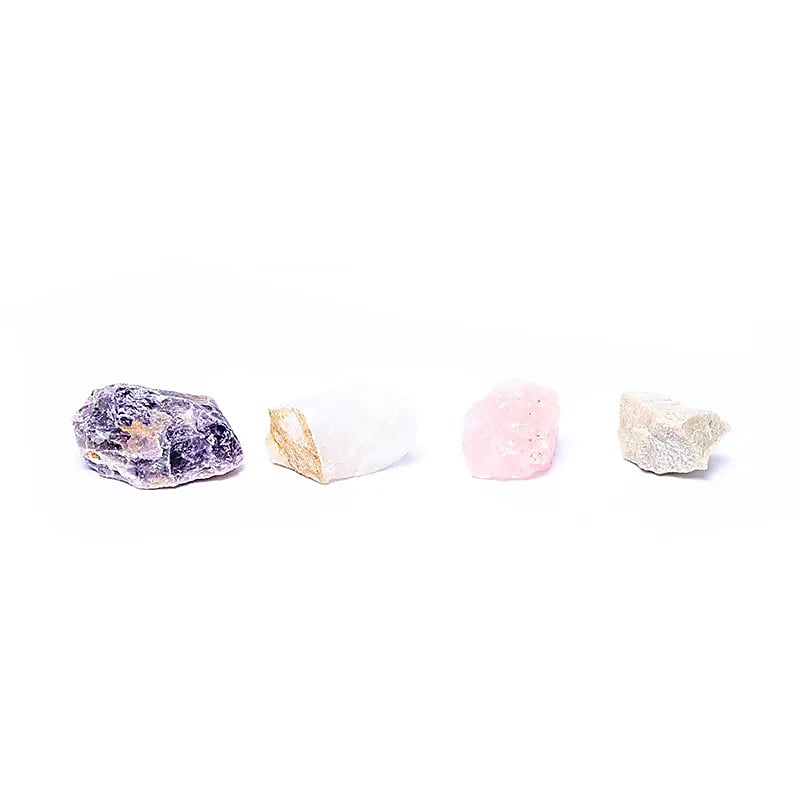 Amatista, Cristal de roca, Cuarzo rosa, Aguamarina